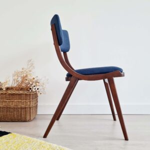 VENDUChaises scandinaves en teck velours bleu côtelé