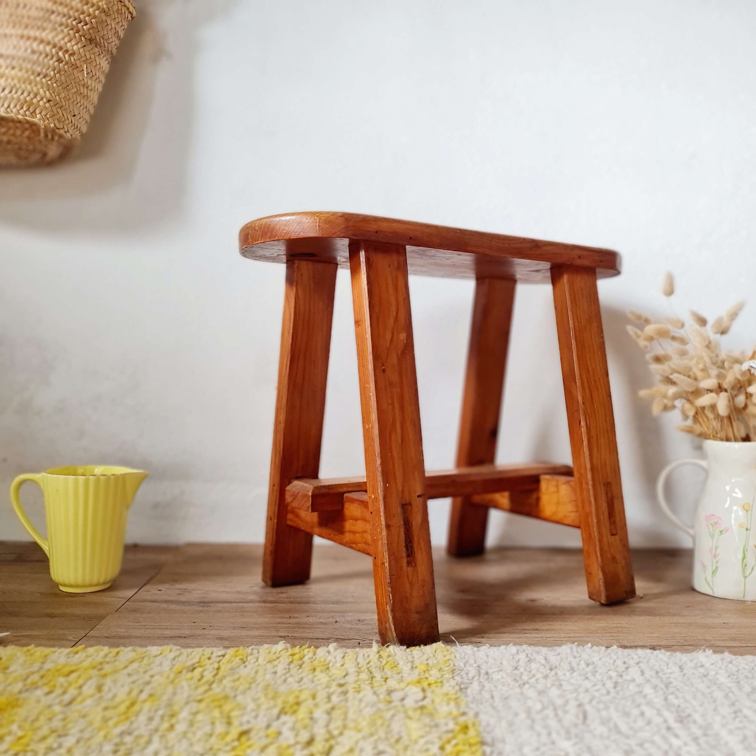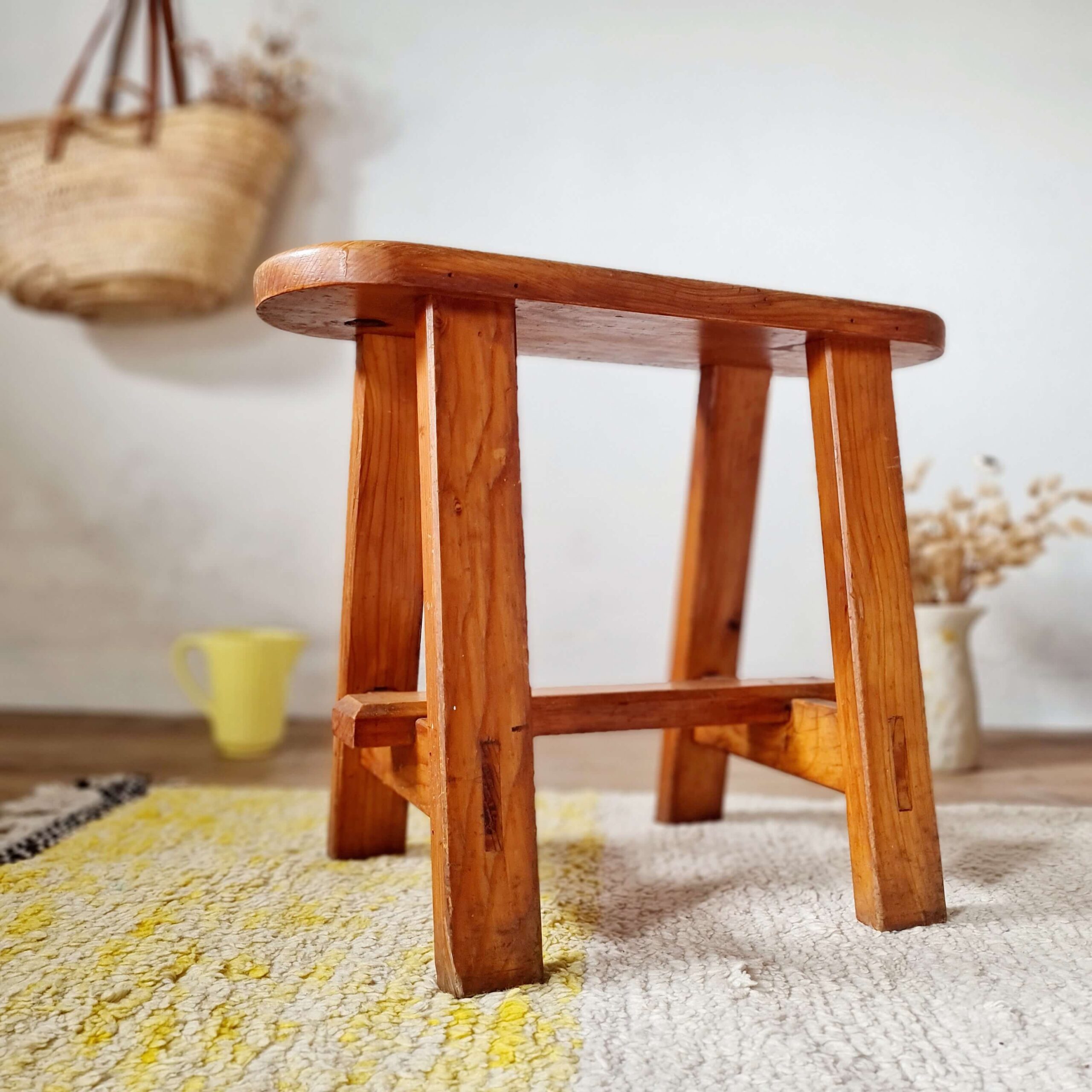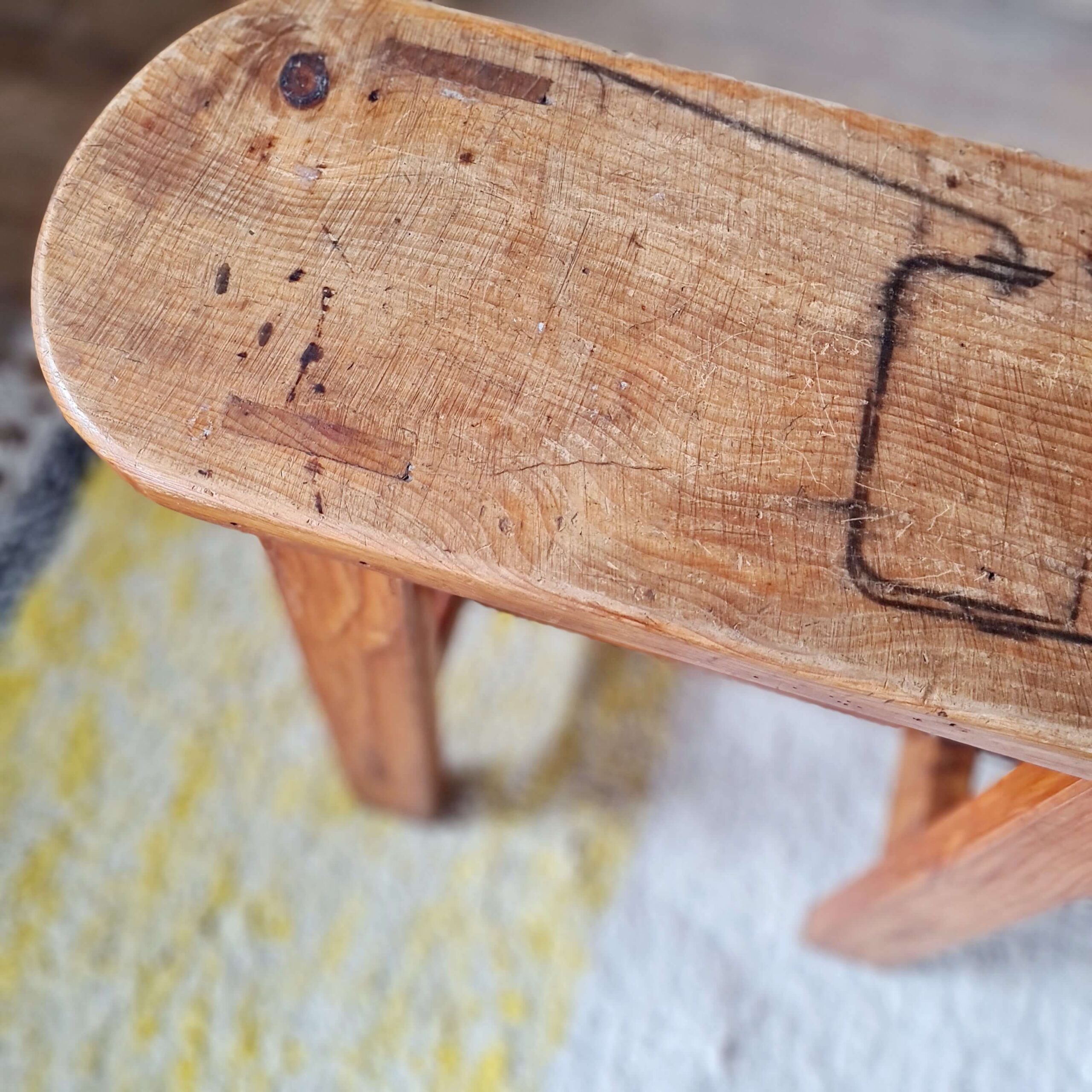 Ce petit banc de ferme est une pépite vintage au charme authentique.