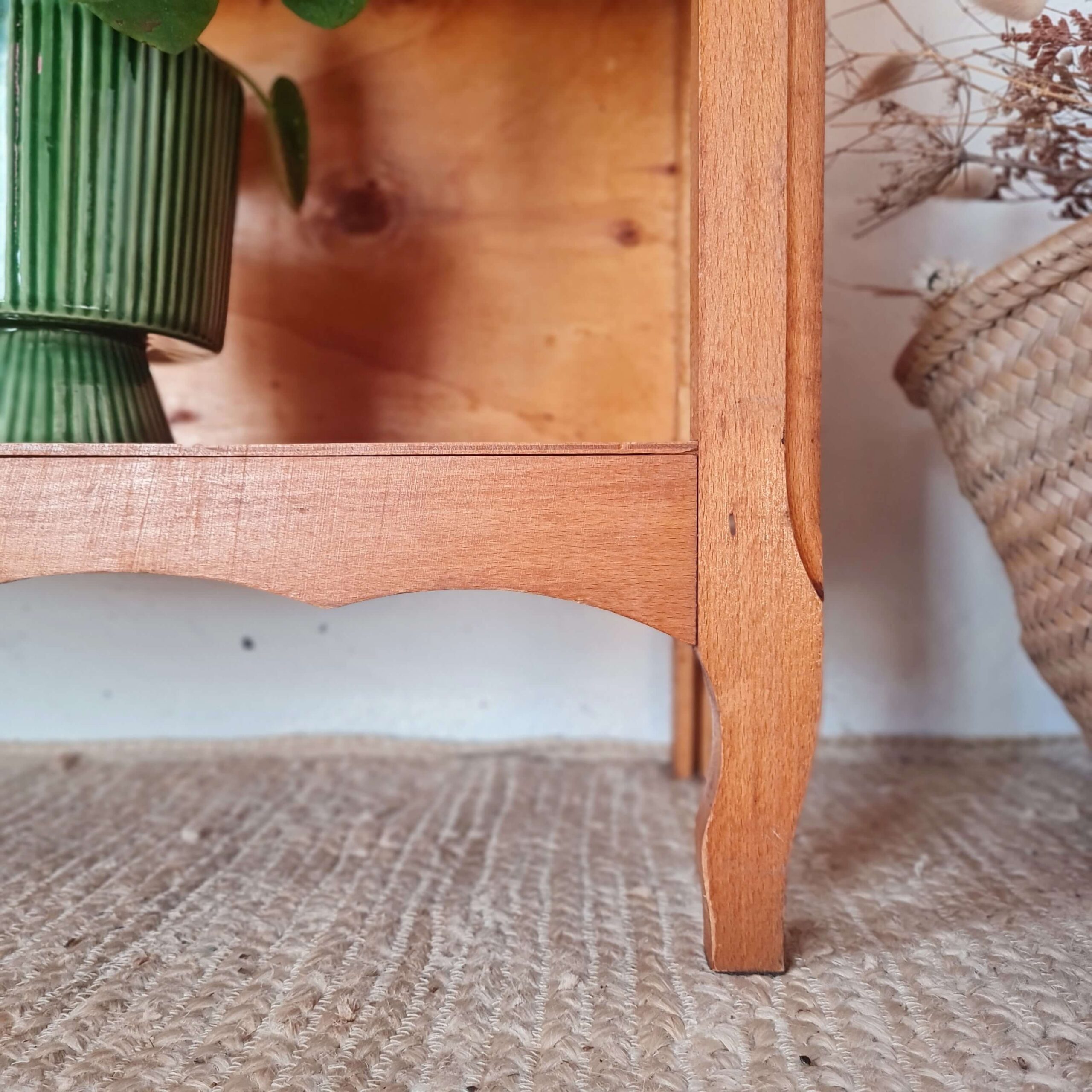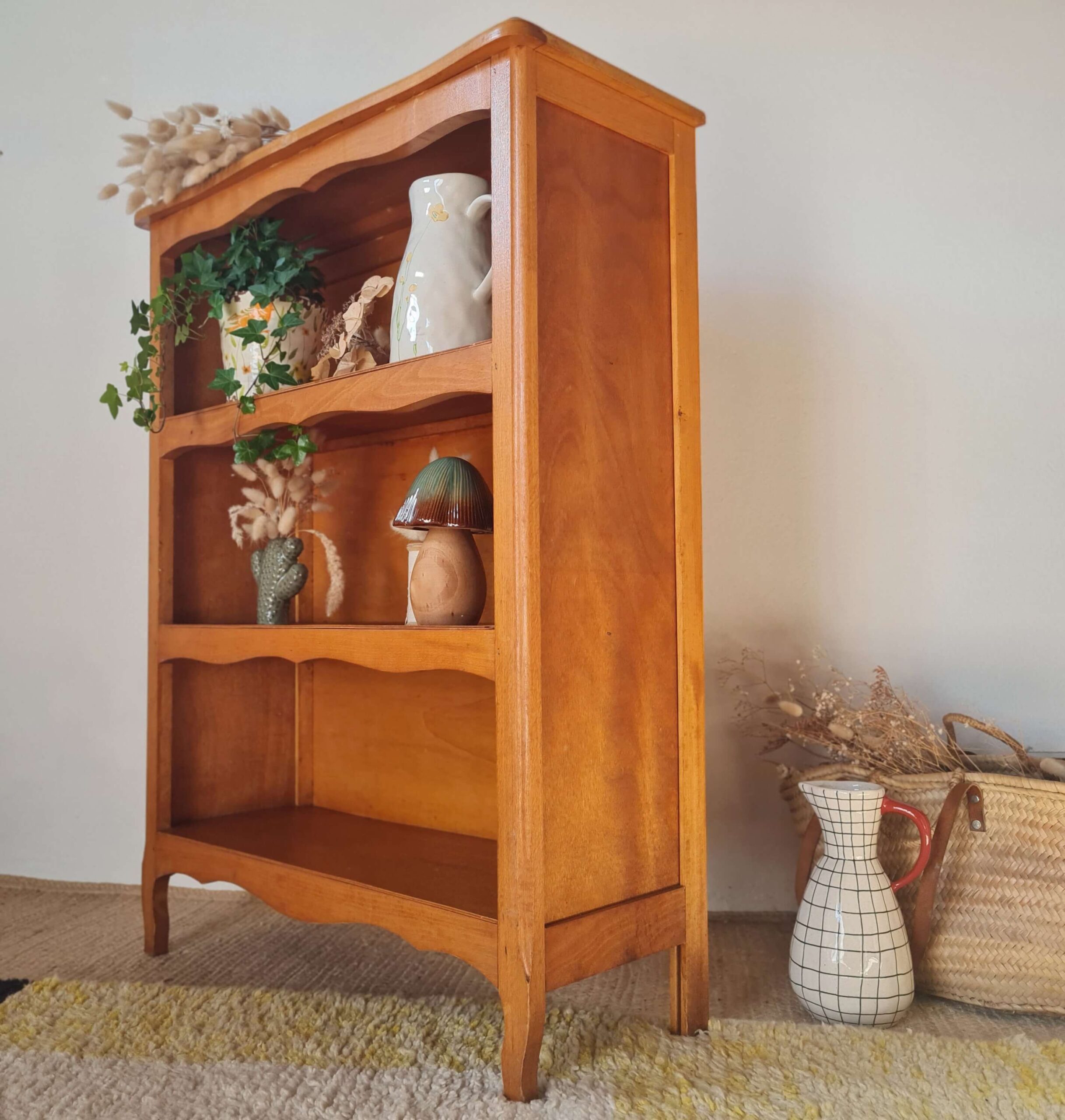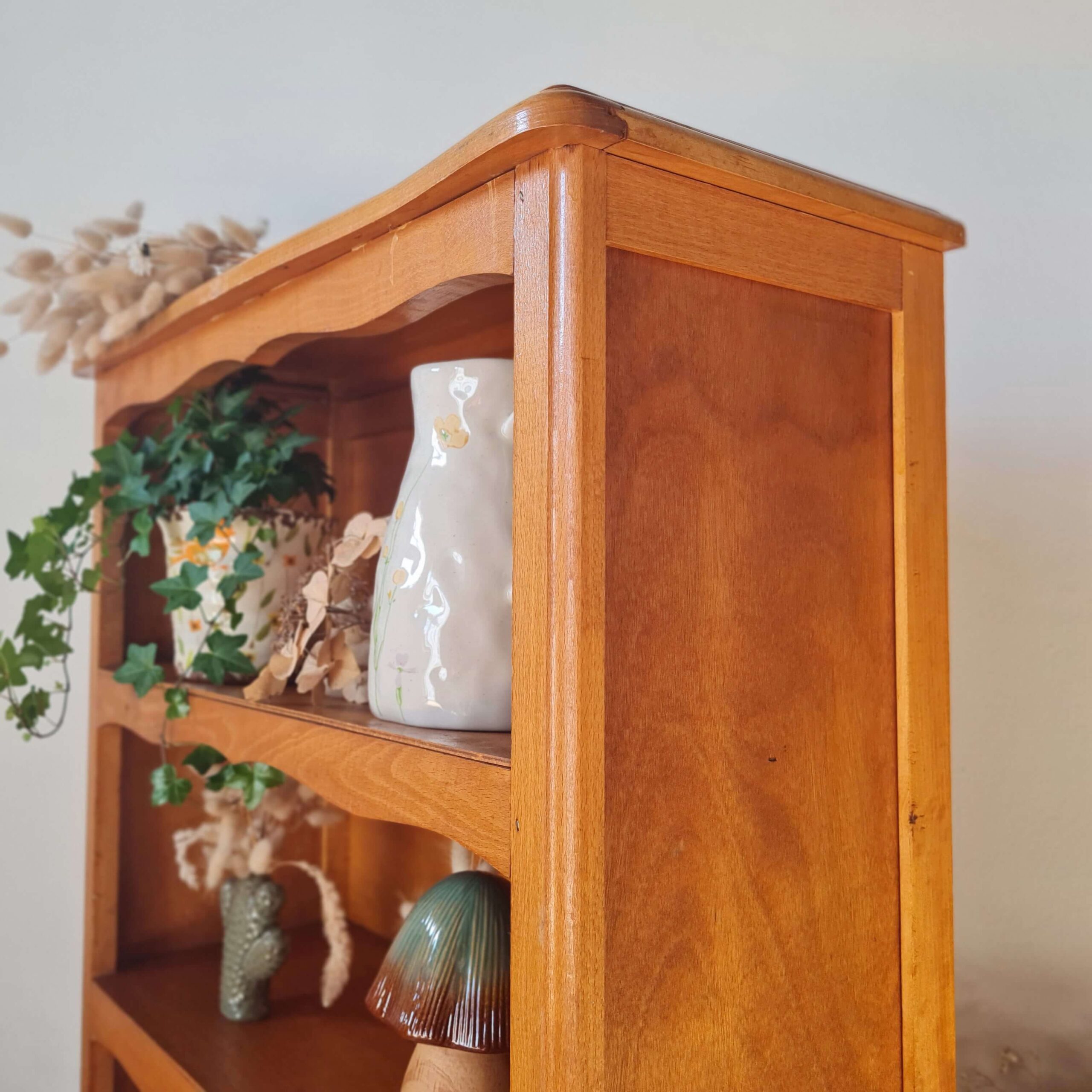 Ce meuble rétro présente deux étagères.