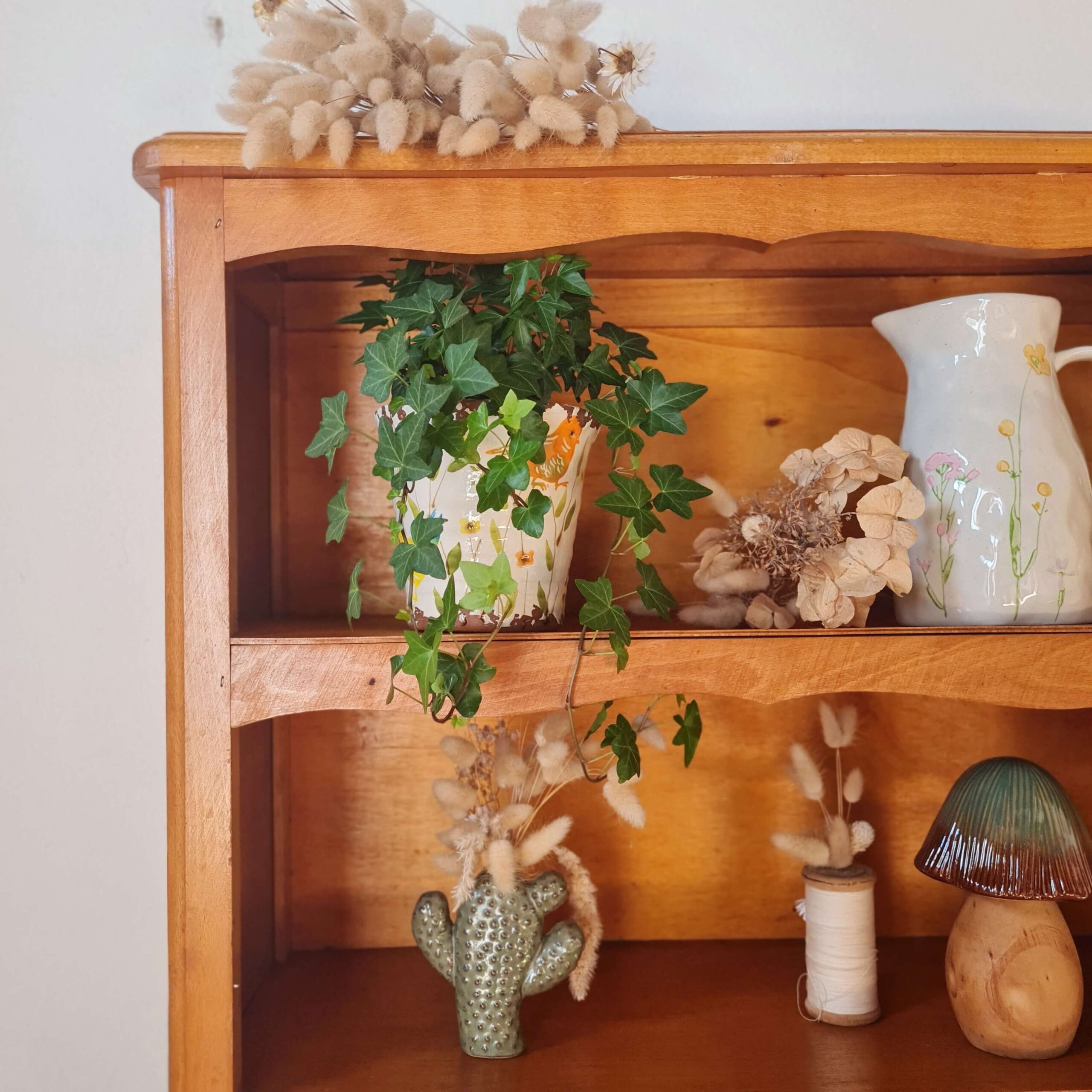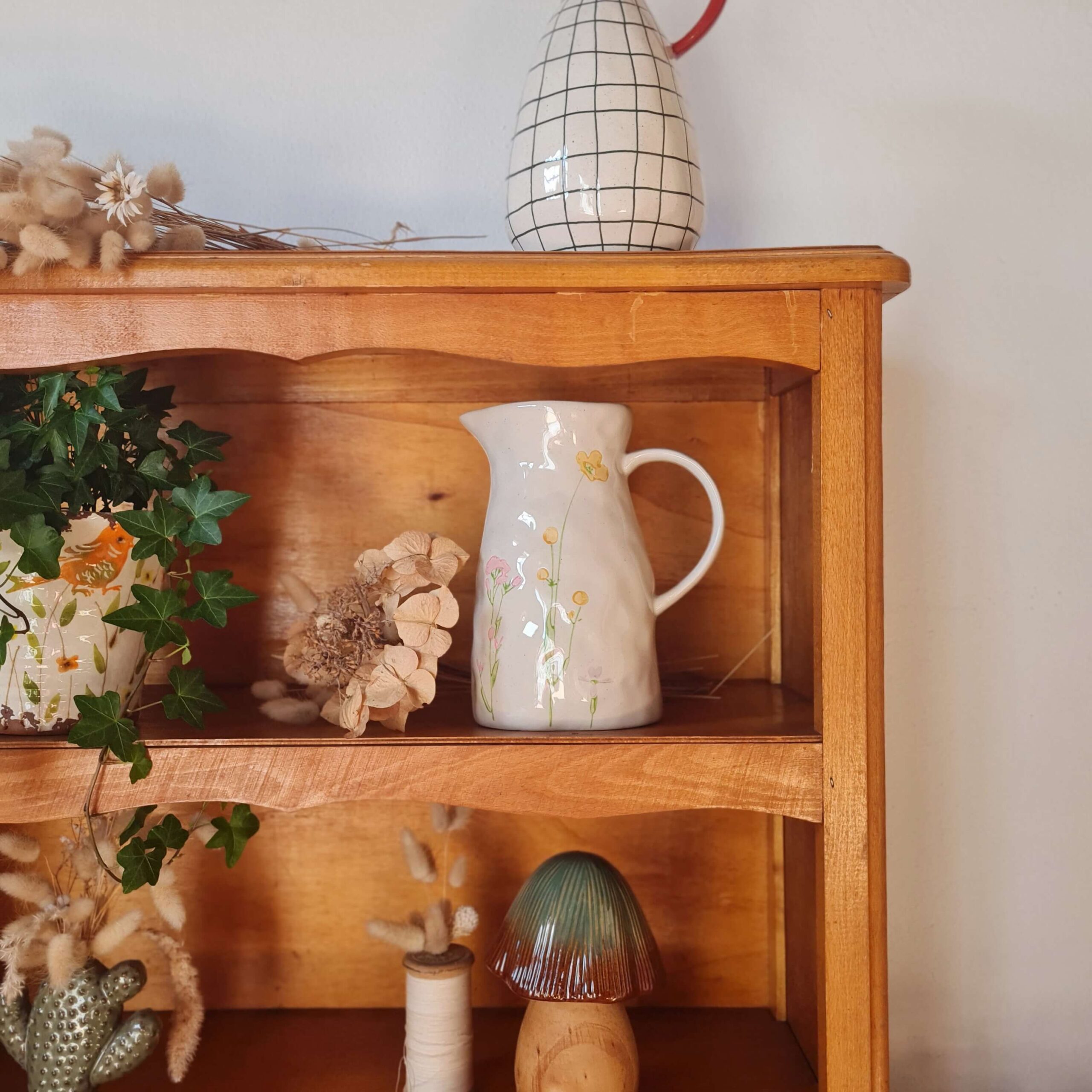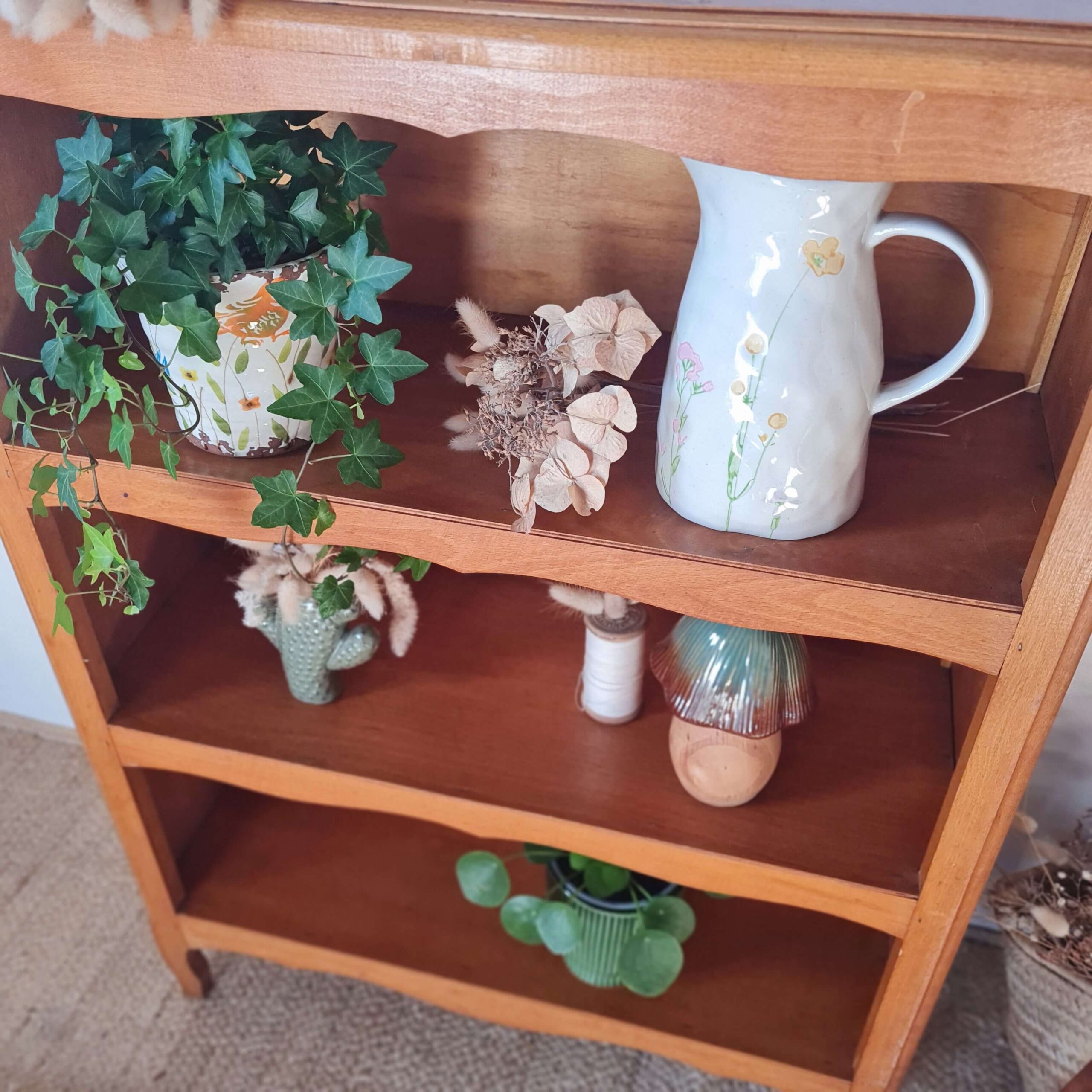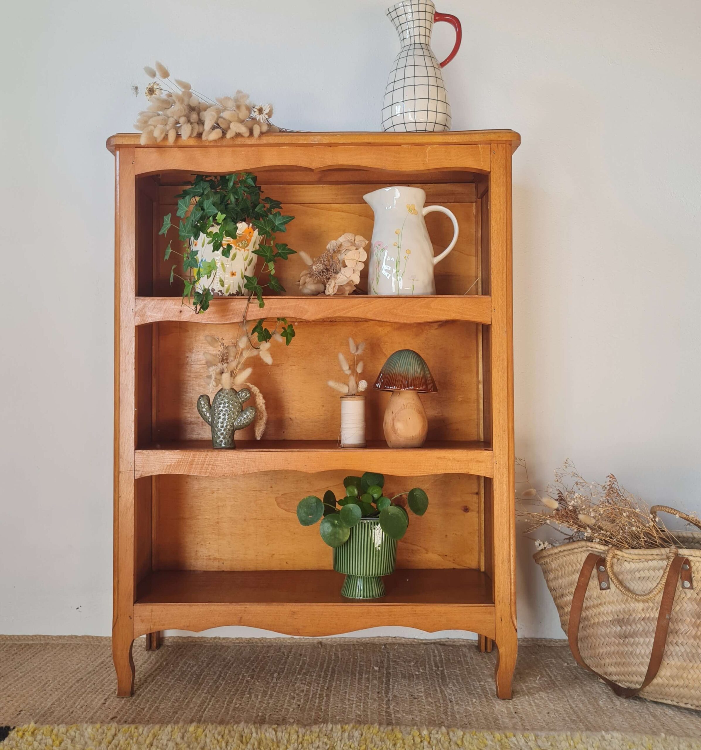 Ce meuble rétro présente deux étagères.