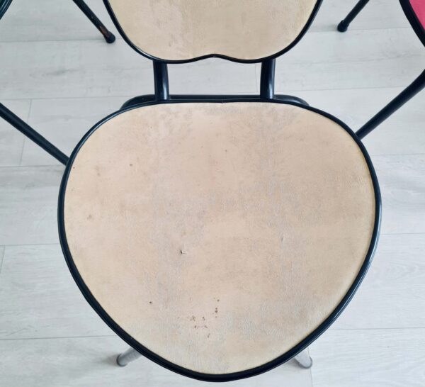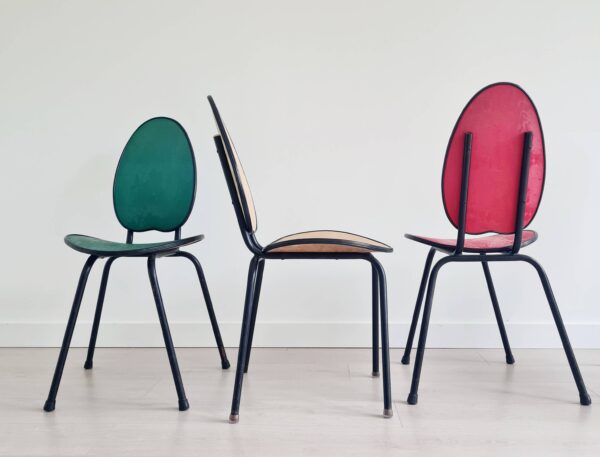 Datant des années 50, ces chaises anciennes affichent des traces du temps.