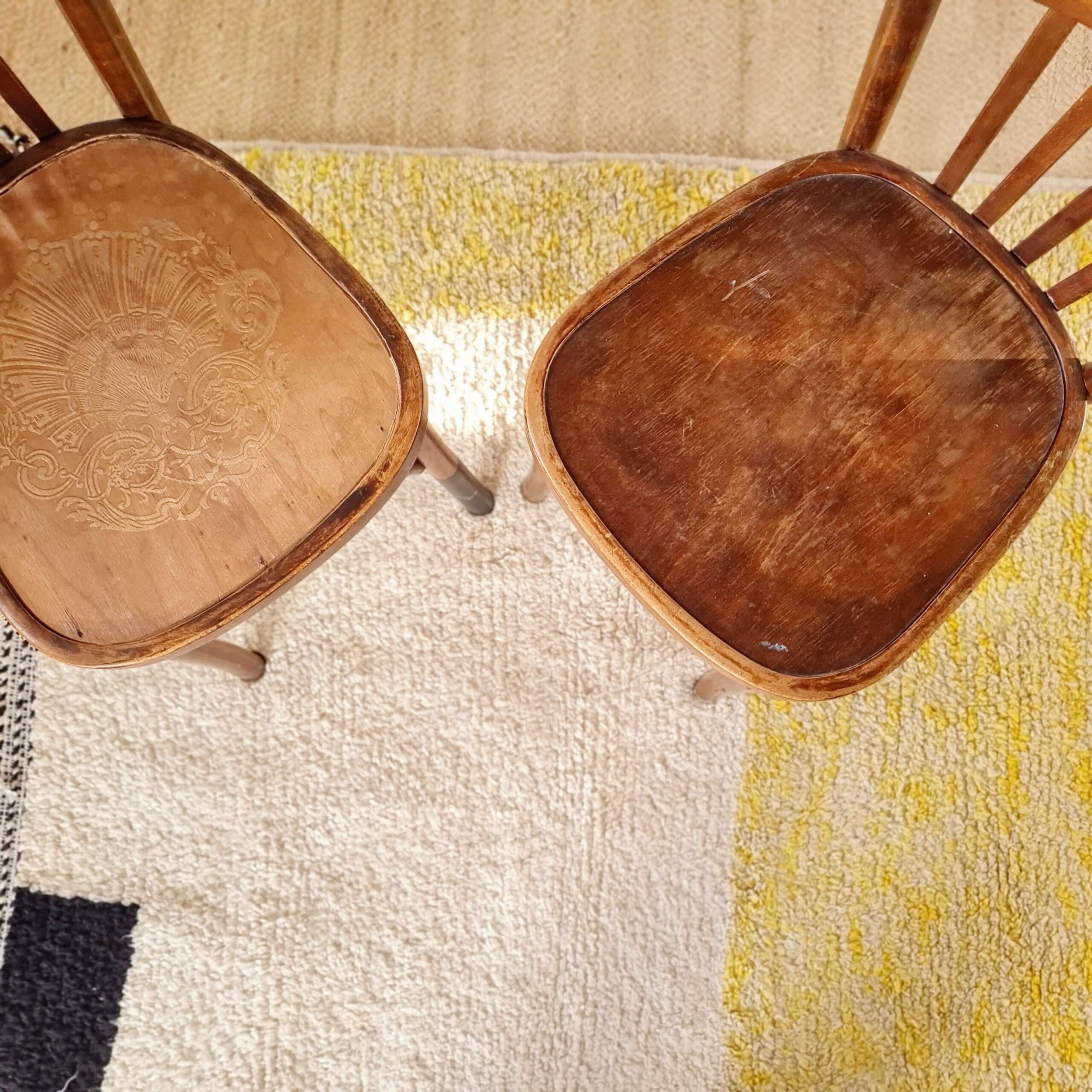 Ces chaises de bistrot anciennes en bois sont de belle fabrication.