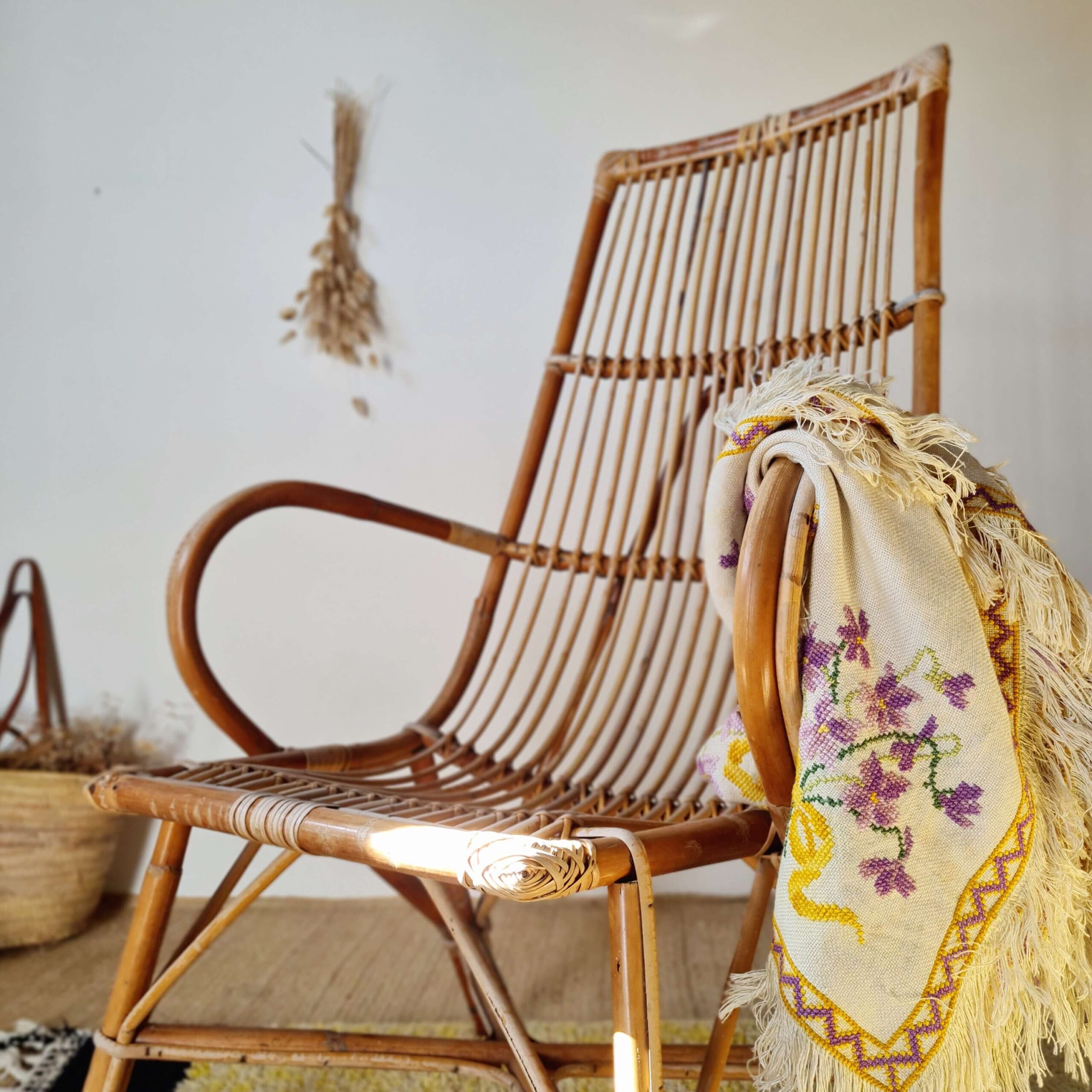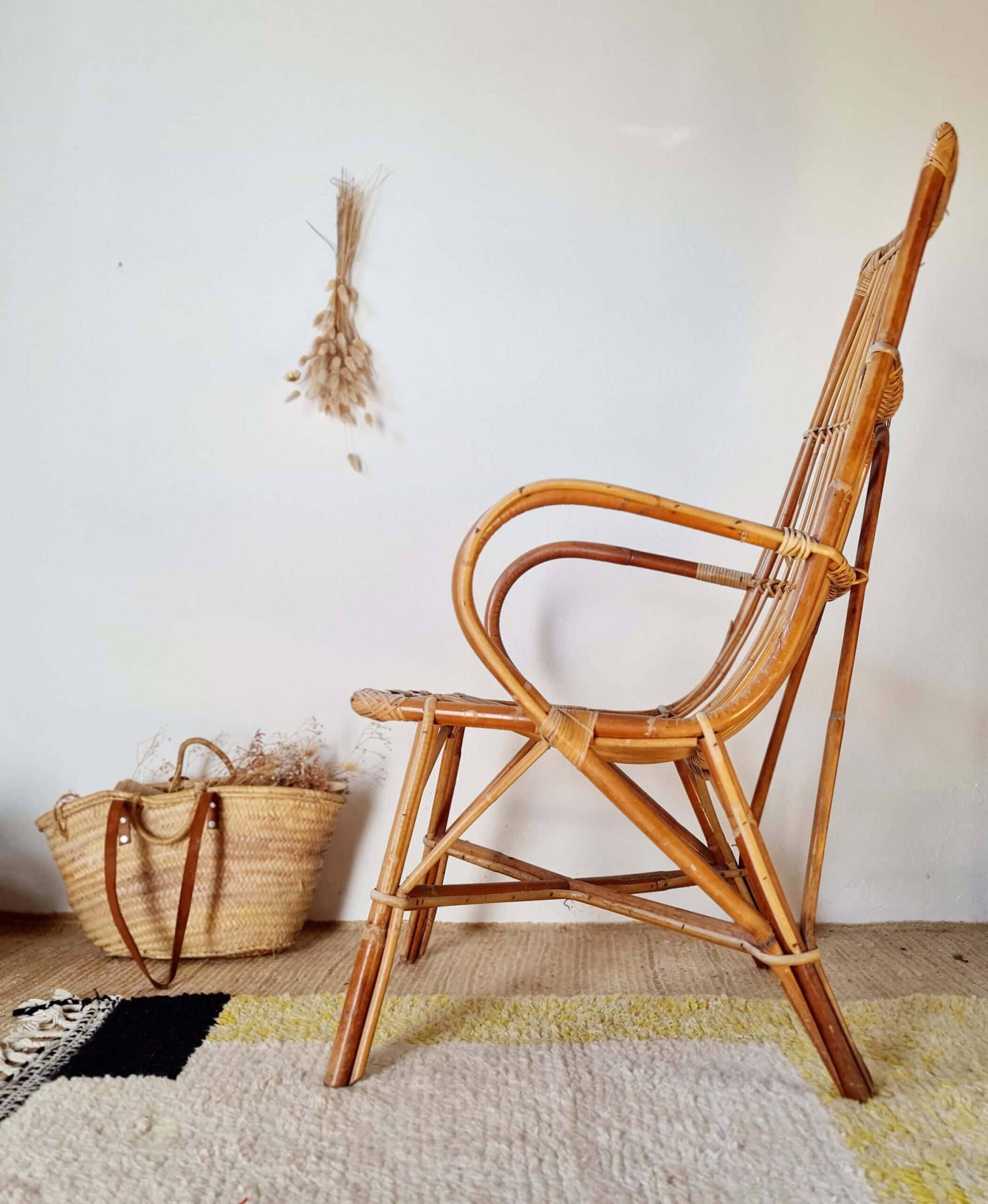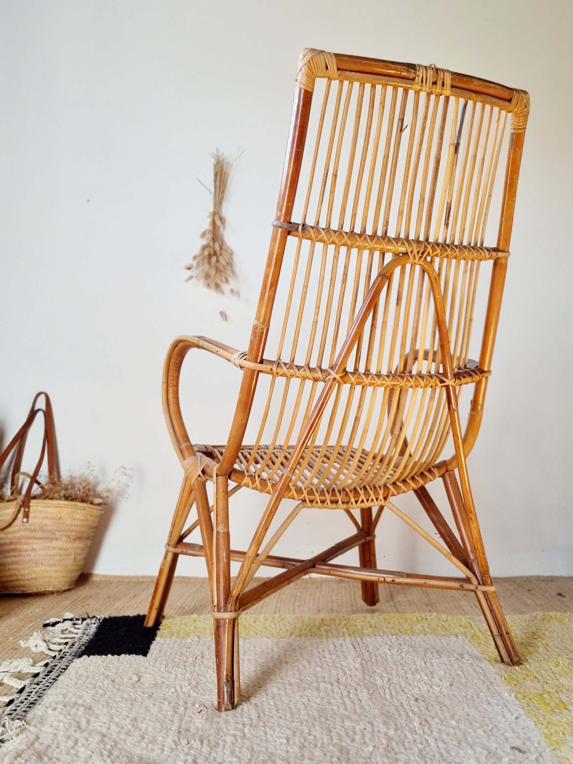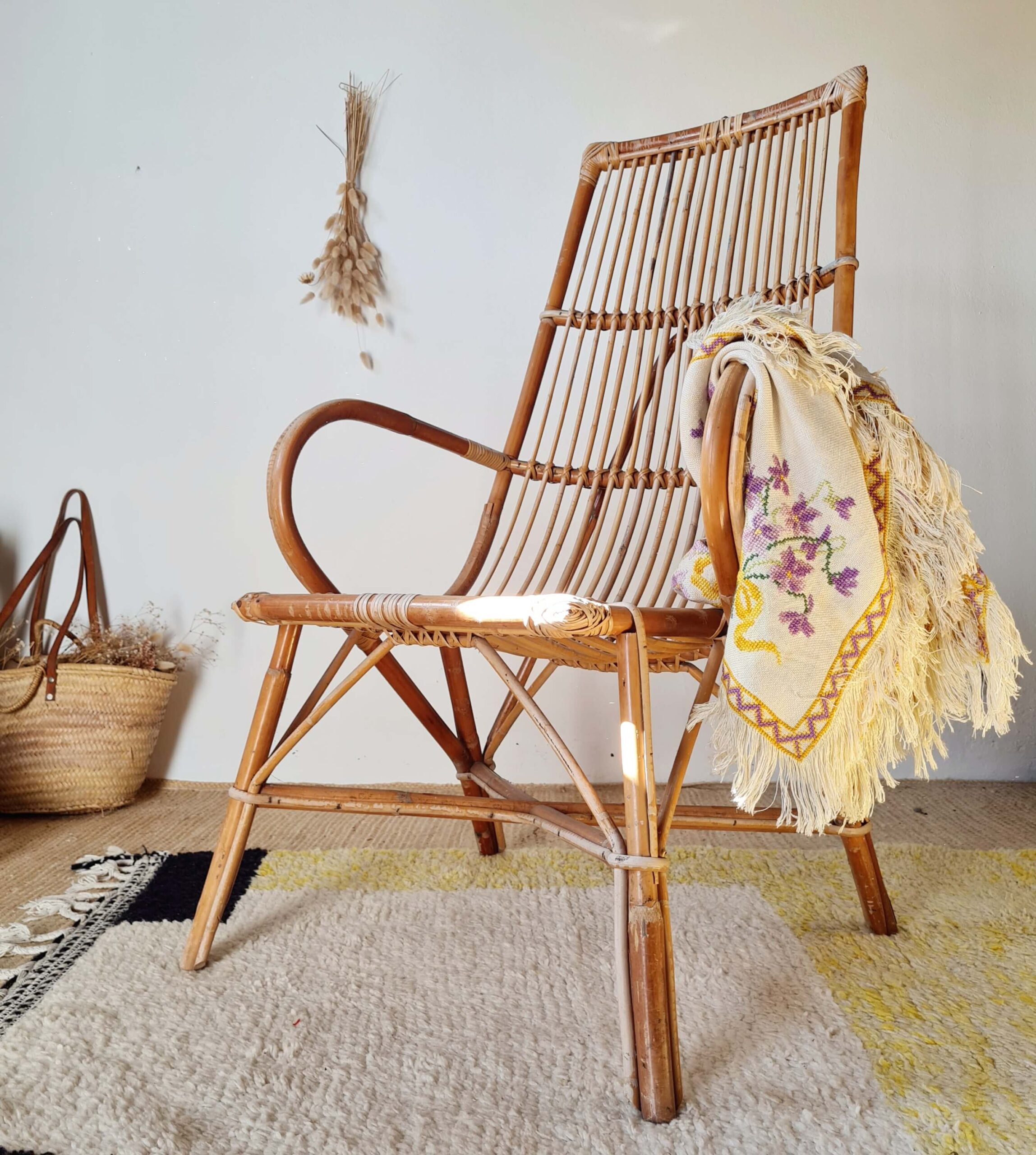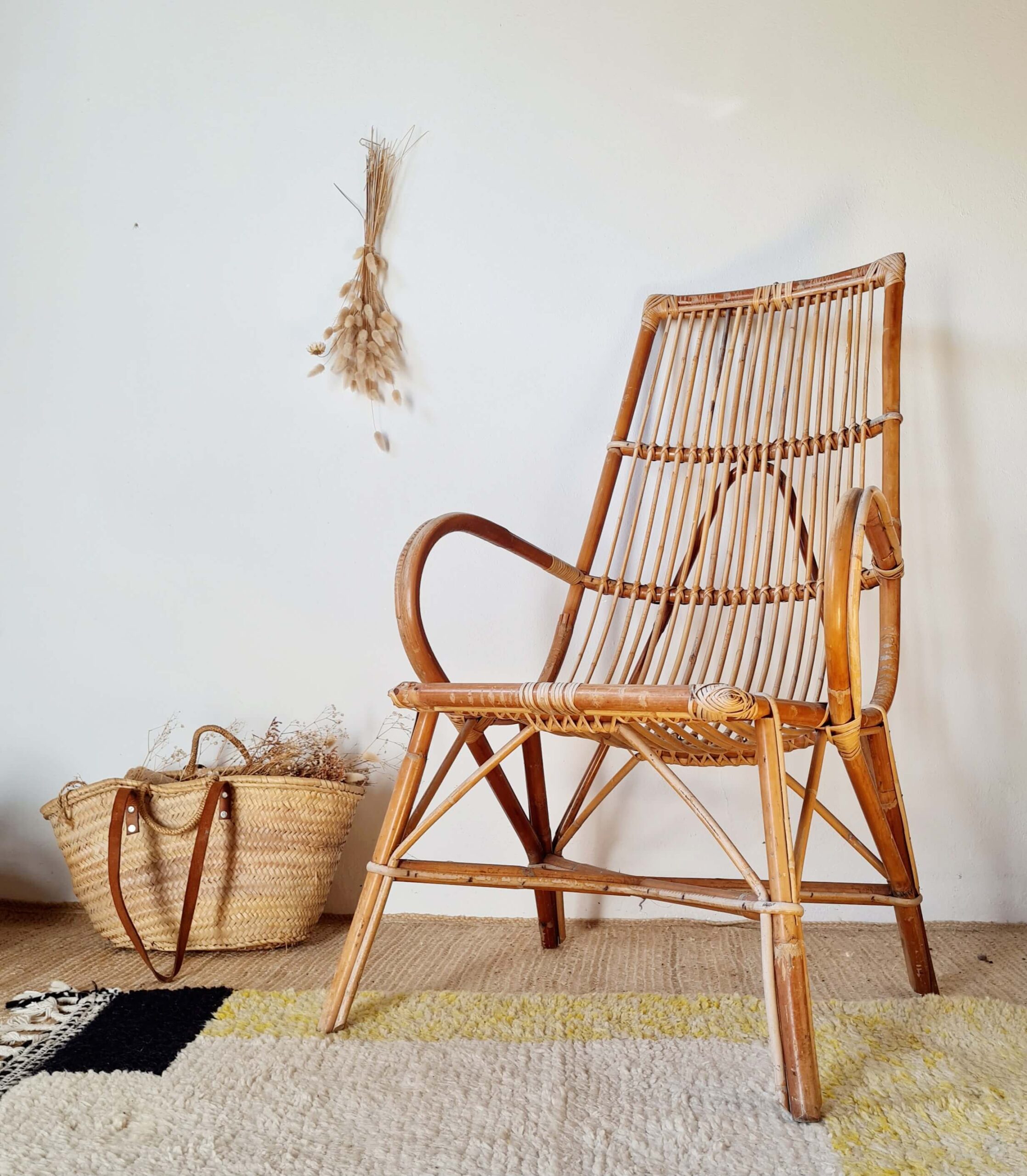 Lignes élancées pour ce fauteuil en rotin vintage.