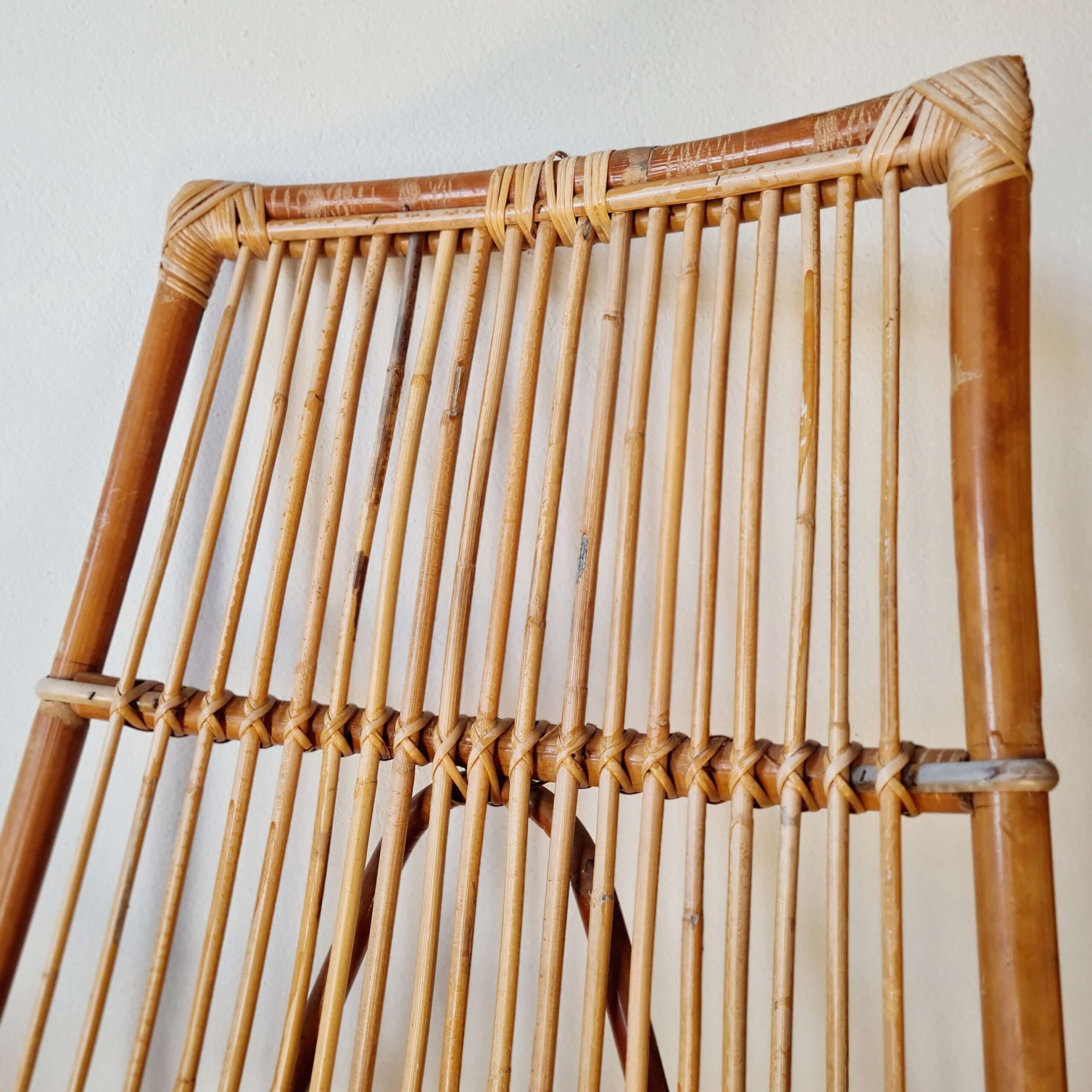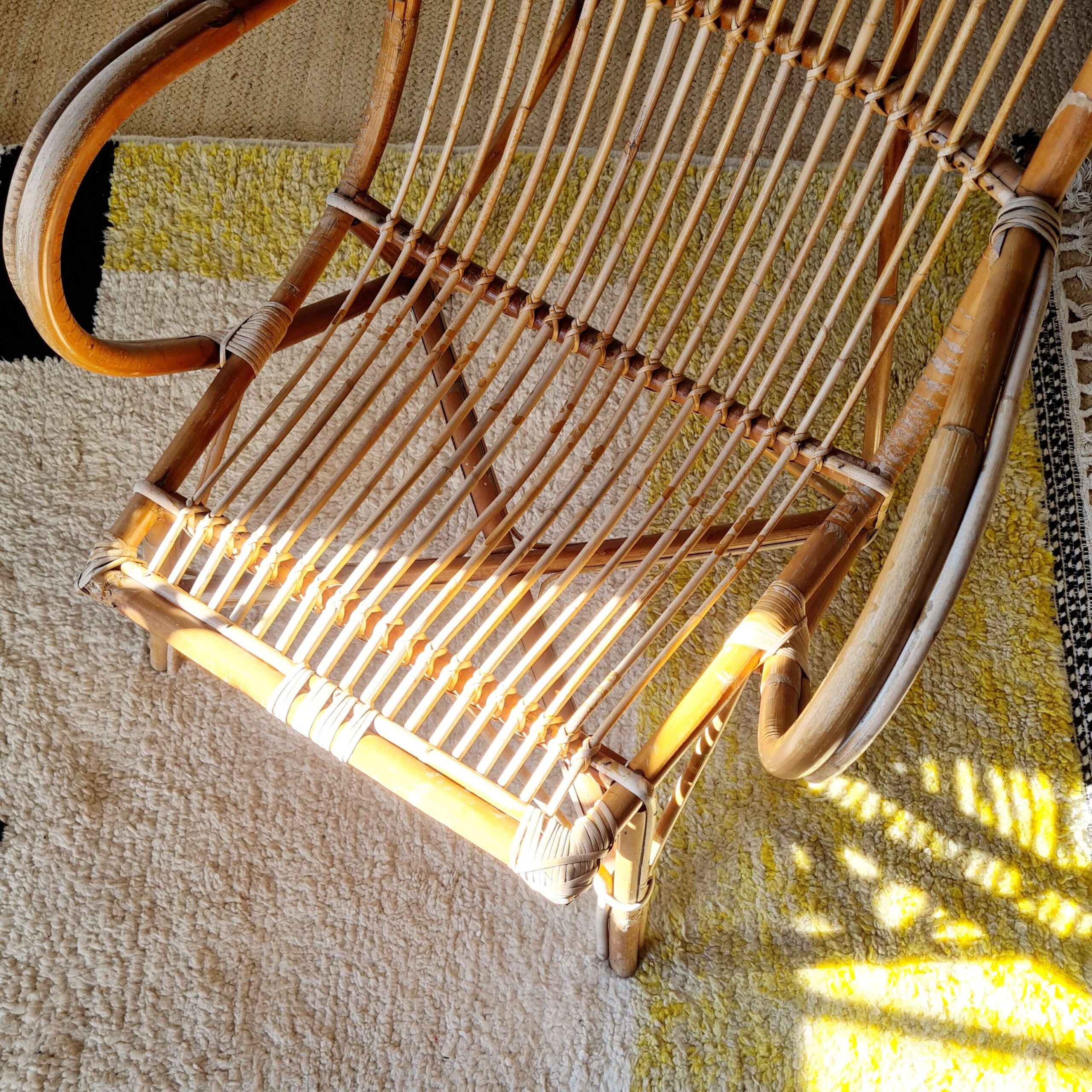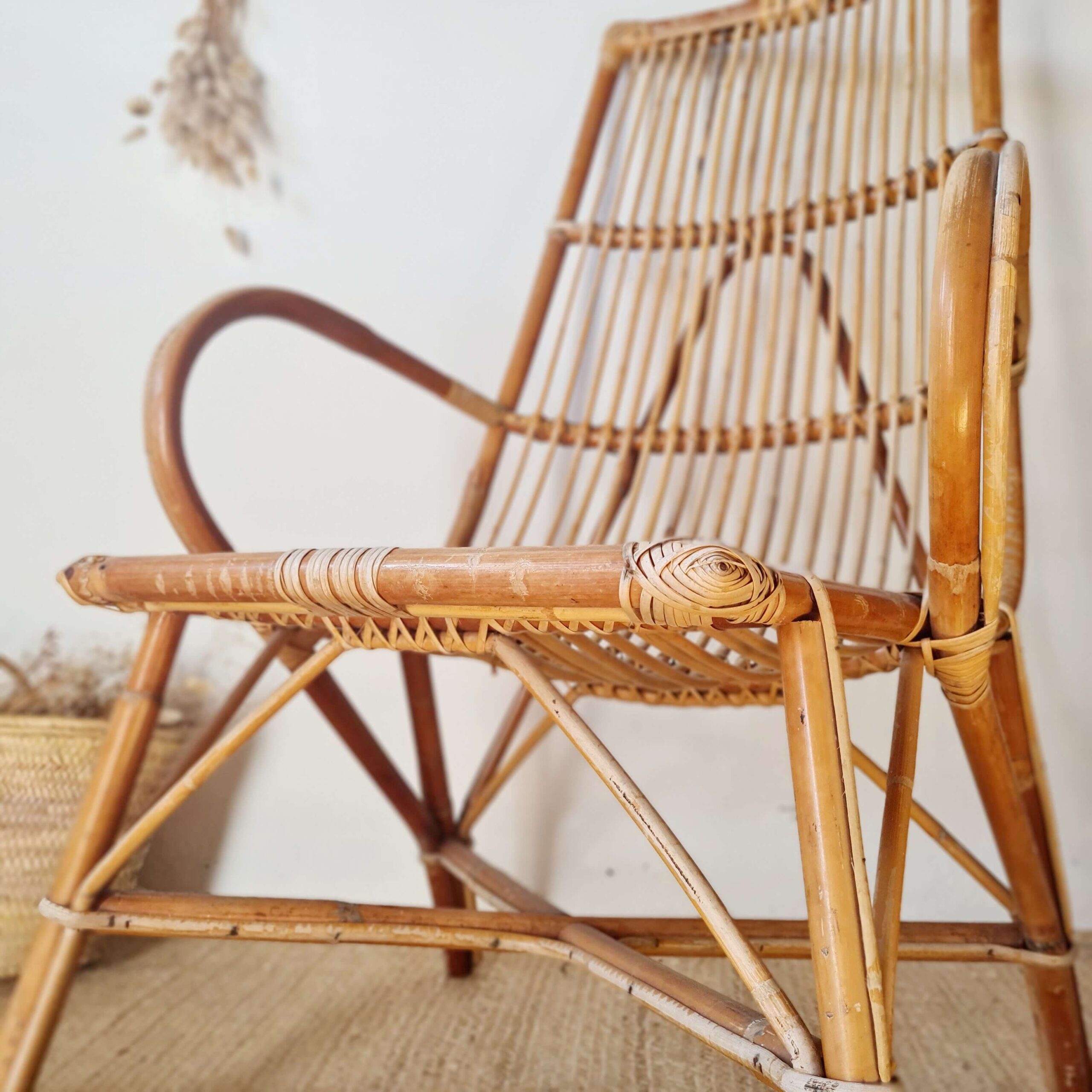 Ancien des années 60, ce fauteuil en rotin ancien est en très bel état, le rotin est lumineux et doux.