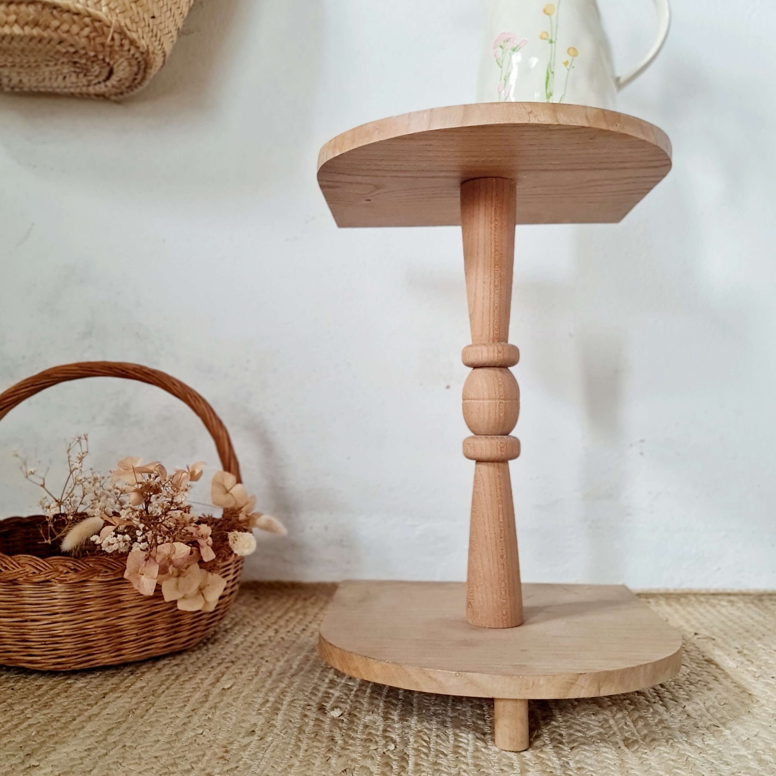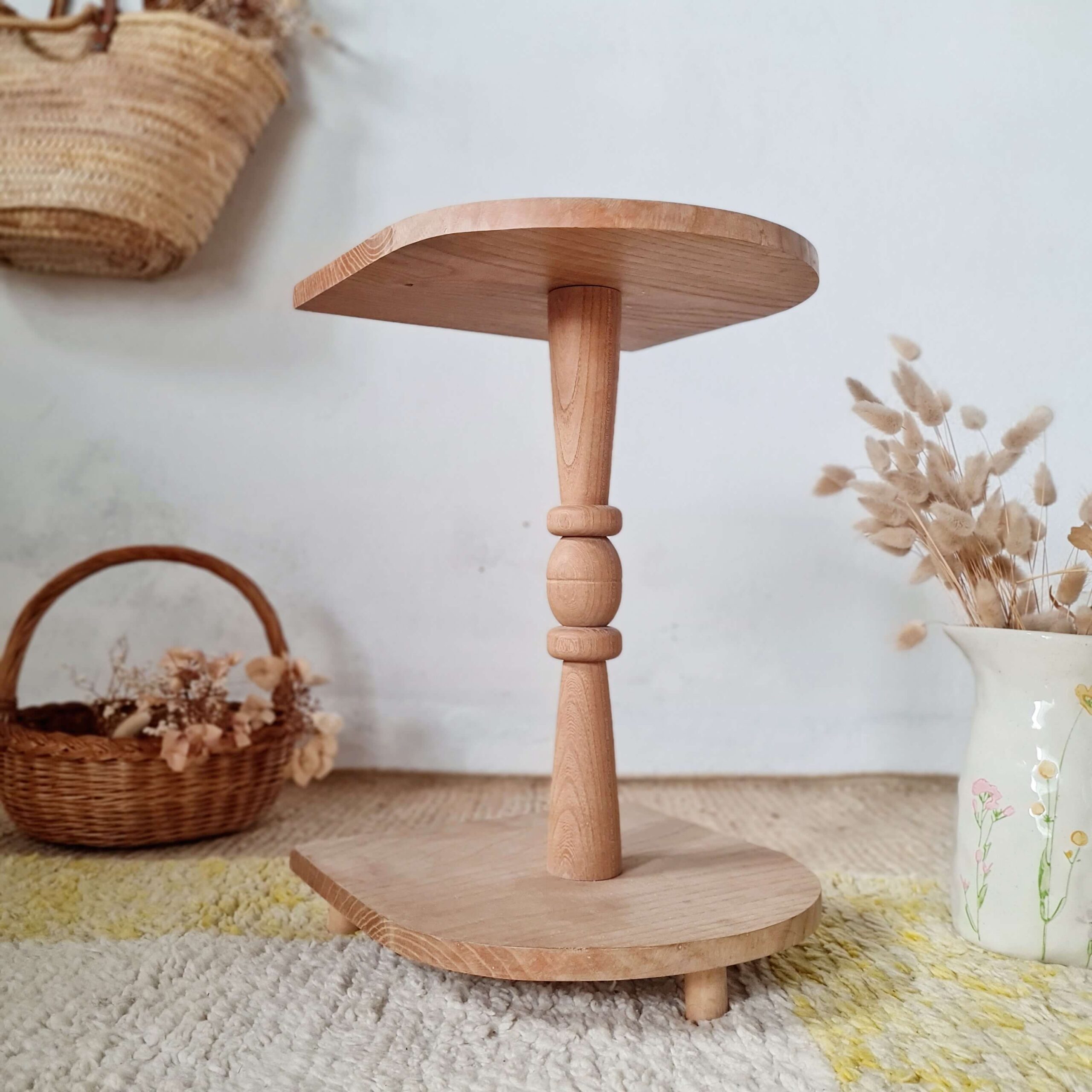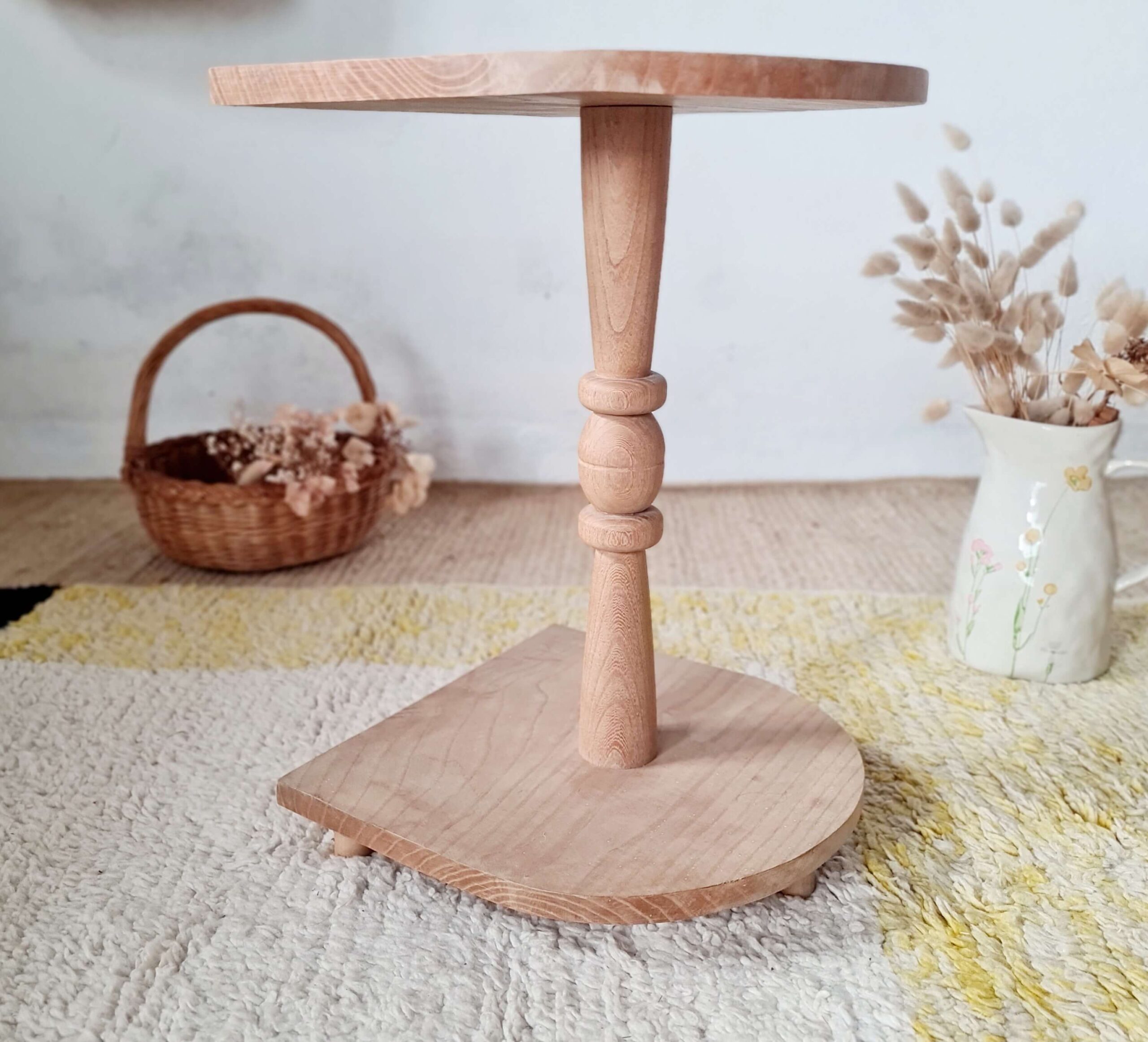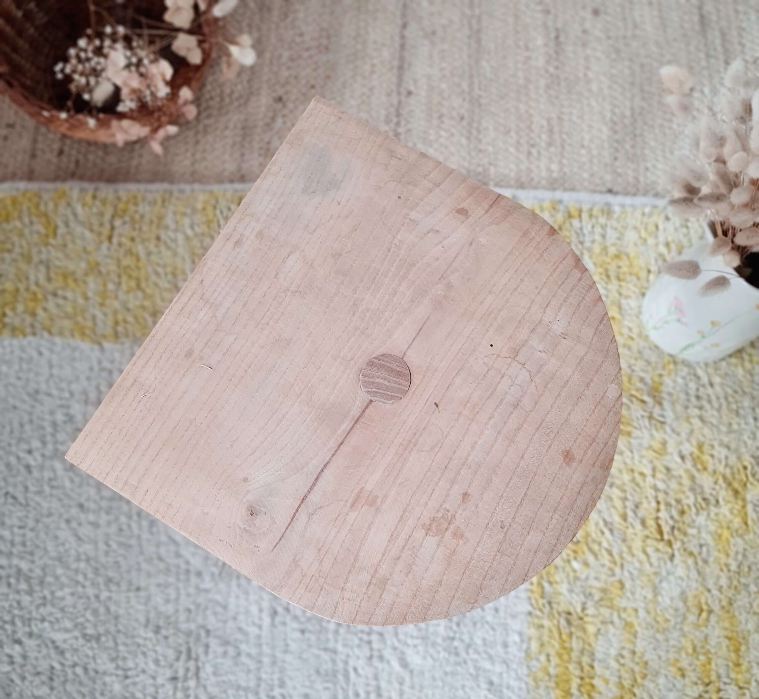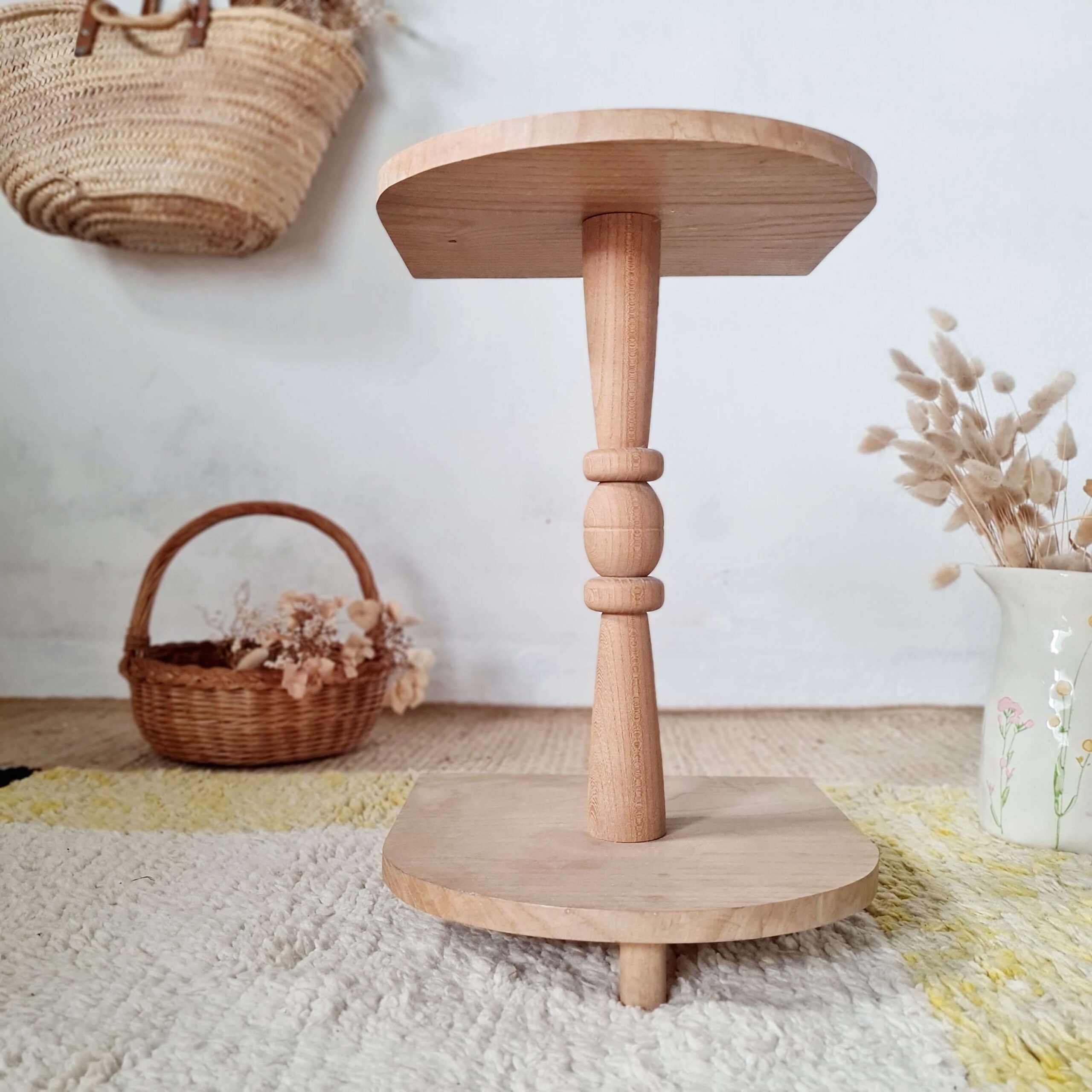 Ce petit guéridon ancien réalisé en bois s’affiche dans son plus simple appareil, brut.