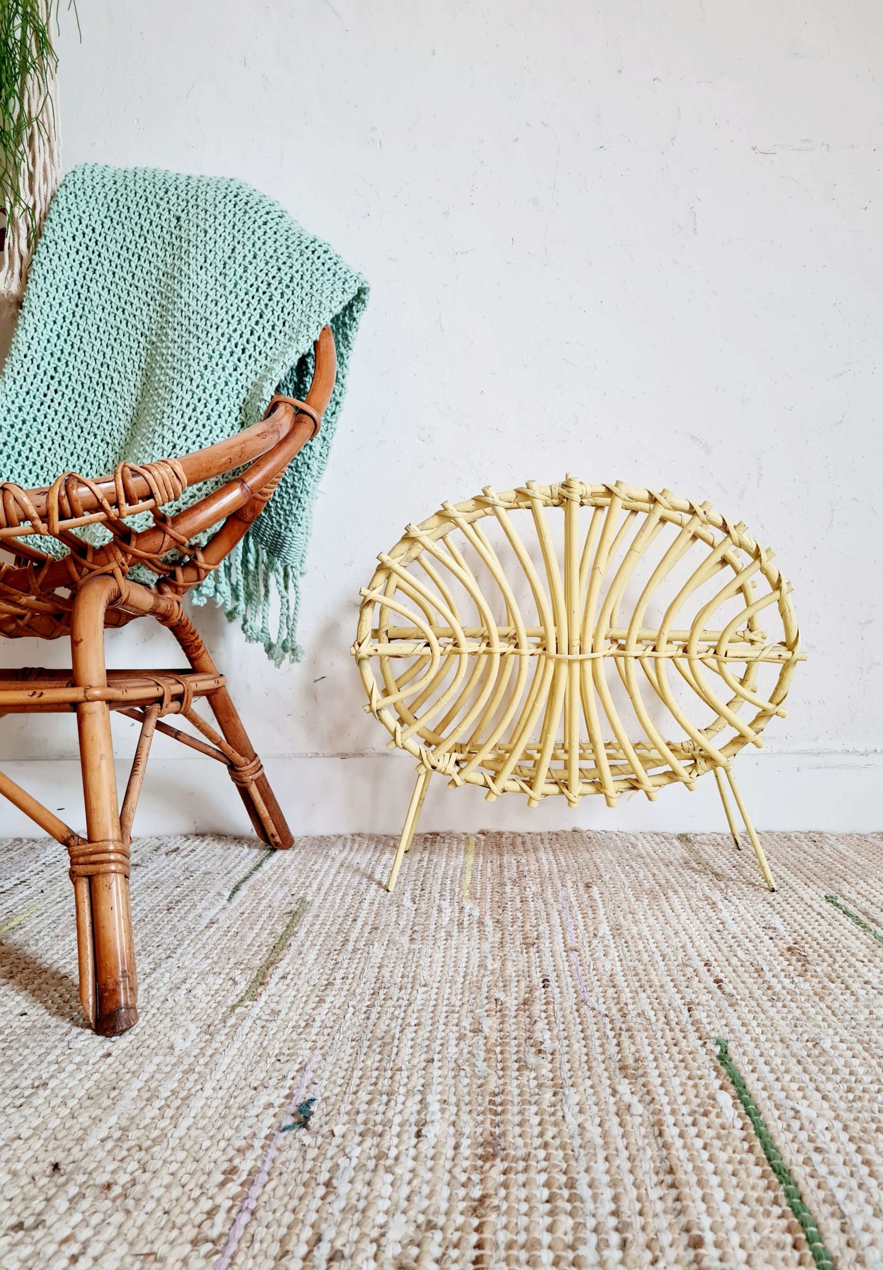 Un travail des années 60 où le travail des fibres de rotin est joliment courbé.